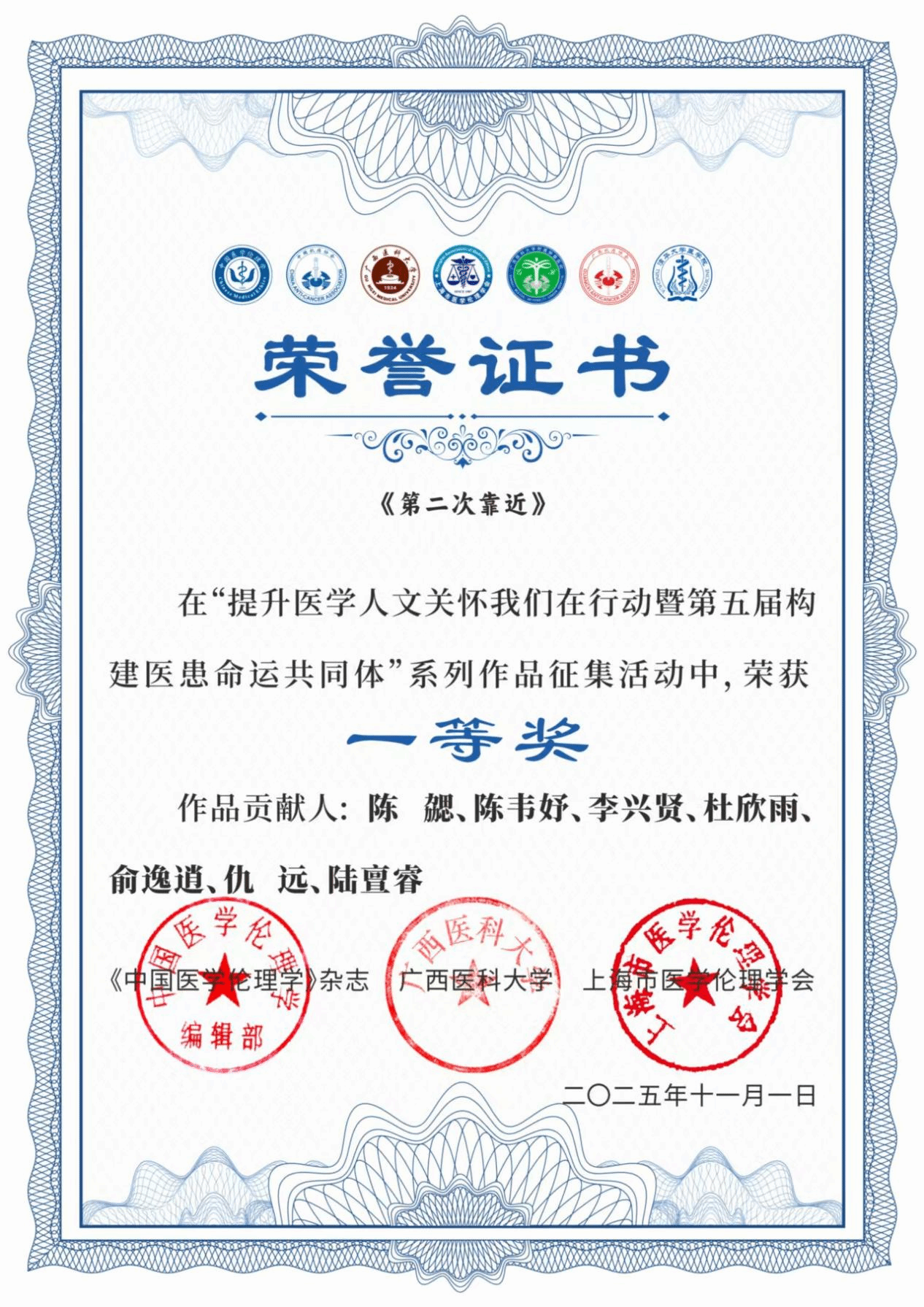 在众多投稿中,《第二次靠近》因其对医学生成长心态的真实刻画及在真实临床场景中所经历的犹豫、克制、靠近与勇气的细腻呈现,最终获得一等奖。