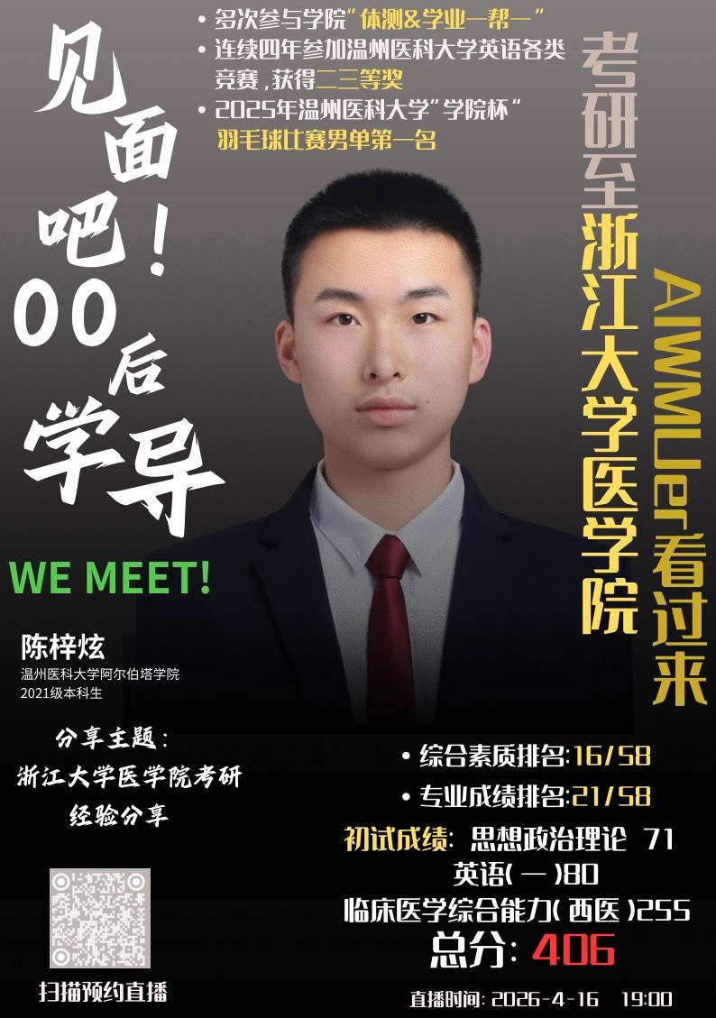 见面吧,00后学导|陈梓炫:浙江大学医大陆a片考研经验分享