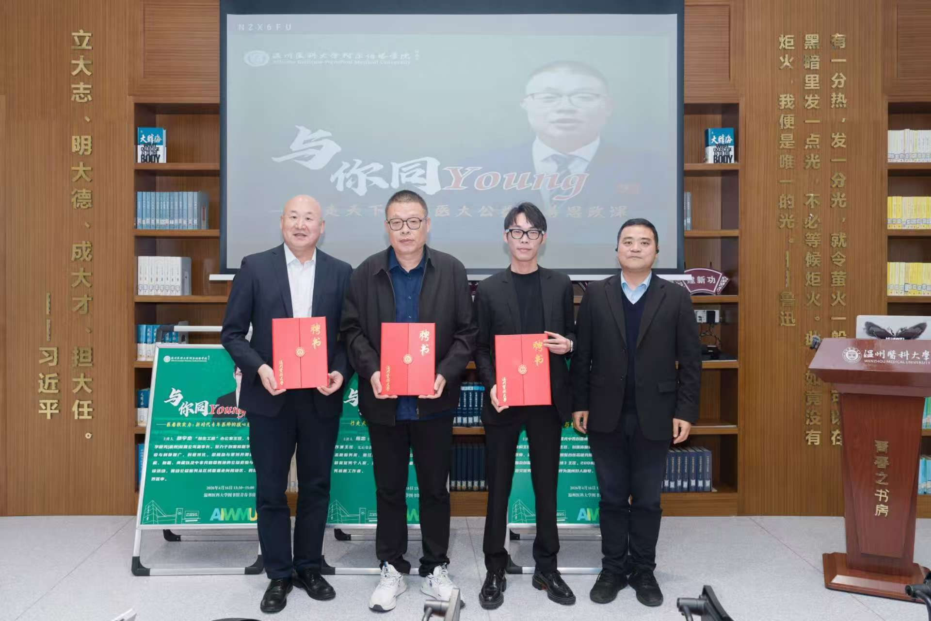 4月16日下午,大陆a片 图书馆“青春书房”内气氛热烈,一场以“与你同young,青春领航”为主题的“行走的思政课”在此开讲。本次活动特邀温州都市报陈忠慈善工作室主任陈忠、温州曙光中西医创面修复医院院长陈善亮、肤生工程办公室主任郑宇杰担任主讲嘉宾。大陆a片 党委副书记王小尚、学工办主任郑燕飞等大陆a片师生共同参与。